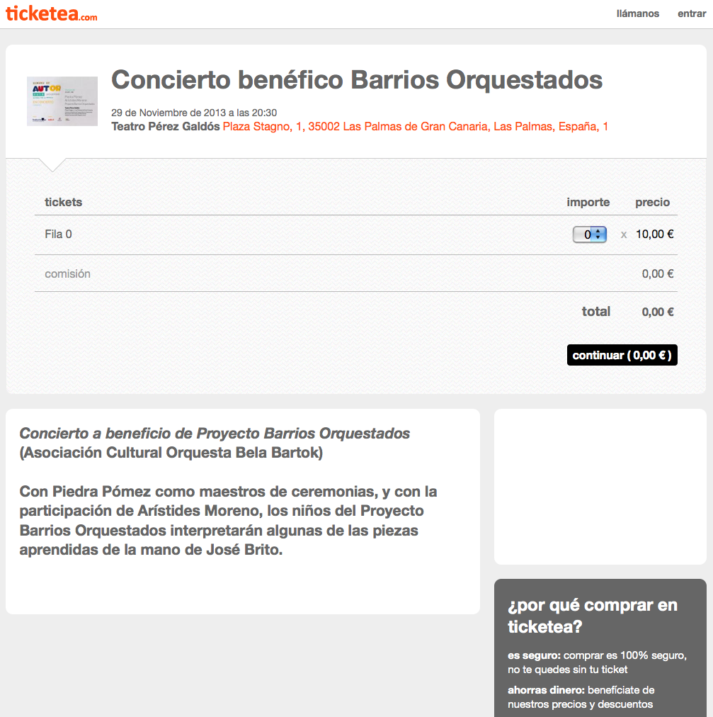 Para aquellos que NO puedan asistir al concierto pero quieren apoyar el proyecto, les invitamos a adquirir una localidad «ficticia» en la FILA 0 a través de www.ticketea.com especificando Concierto benéfico Barrios Orquestados.